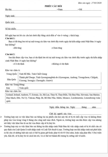 Những thay đổi về thủ tục visa Nhật Bản từ tháng 3 năm 2020