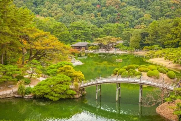 Công viên Ritsurin là một công viên kiểu cảnh quan Nhật Bản truyền thống với hồ, sân vườn xanh tươi và kiến trúc đẹp. Đây là nơi tuyệt vời để thả mình trong không gian yên bình và tận hưởng cảnh quan thiên nhiên.