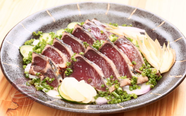 - Katsuo no Tataki: Món ăn đặc trưng của Kochi là Katsuo no Tataki, là cá ngừ tươi được nướng nhanh trên lửa mạnh và sau đó được chế biến thành các miếng nhỏ. Món này thường được thưởng thức với đậu tương và tỏi. Katsuo no Tataki có hương vị đậm đà và được coi là một biểu tượng ẩm thực của Kochi.