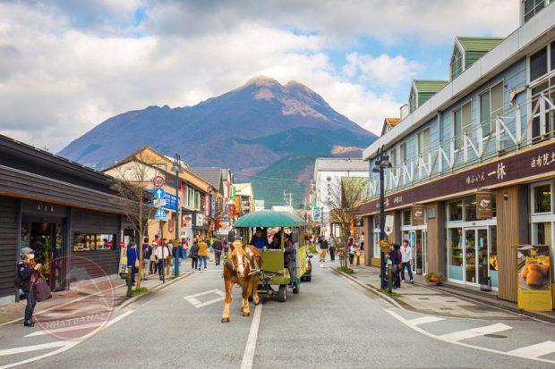 Yufuin là một thị trấn nhỏ nằm giữa các ngọn núi và hồ Yufuin. Nơi này nổi tiếng với các khu suối nước nóng, cửa hàng nghệ thuật và cửa hàng đồ handmade. Du khách có thể đi dạo trong khu vườn thơ mộng, tận hưởng không khí yên bình và mua sắm các sản phẩm thủ công độc đáo.