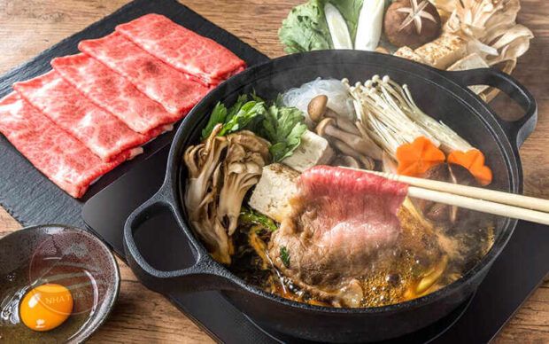 Sukiyaki có một món luộc truyền thống của Nhật Bản. Nó bao gồm thịt bò nạc cắt, rau và các loại gia vị được nấu trong một nội dung đặc biệt. Sukiyaki tại Neburi Nagashi Kan thường được phục vụ với nước sốt tuyệt vời và kèm theo sốt.