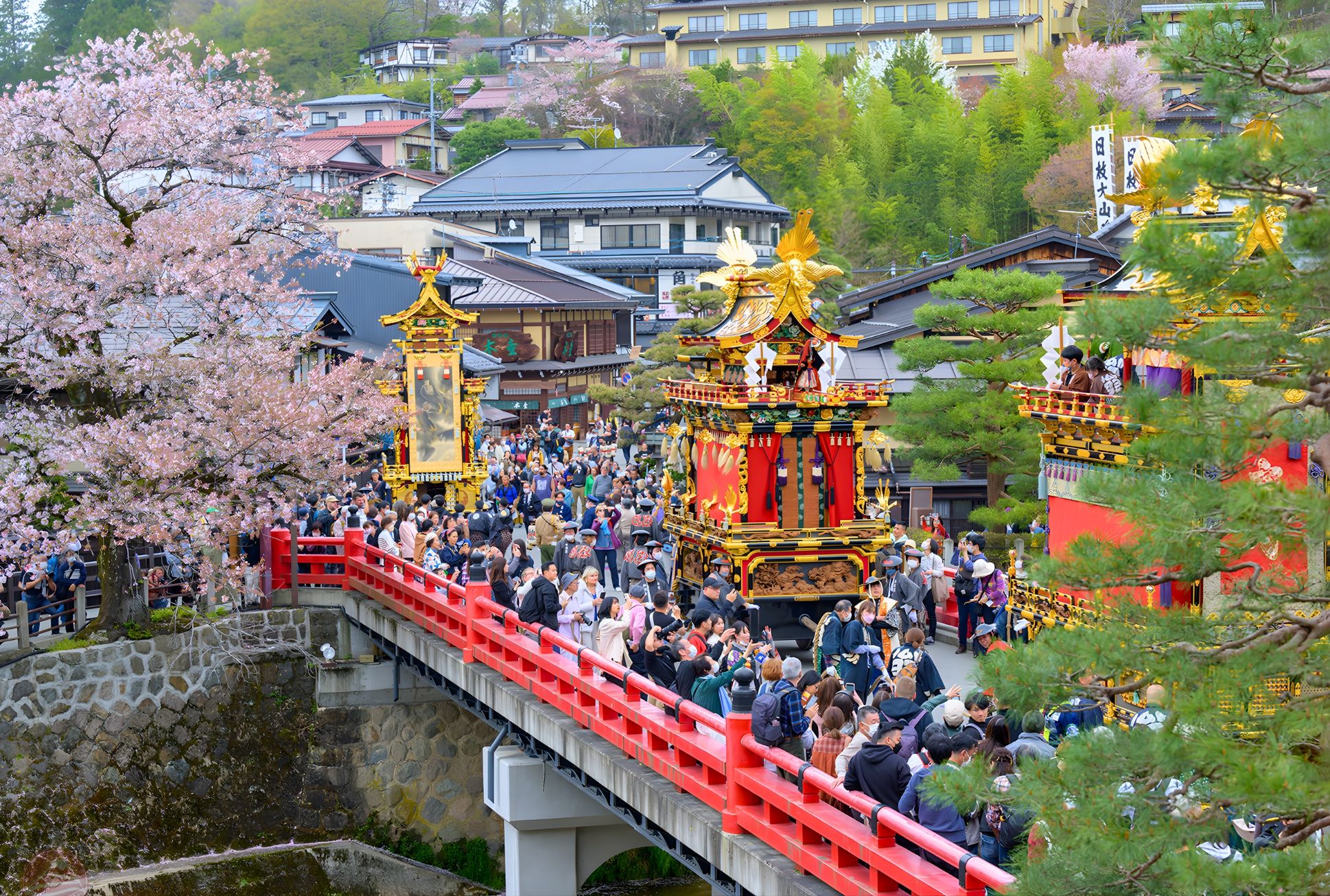 Nếu ghé thăm Takayama mùa hoa anh đào, bạn đừng bỏ lỡ Takayama Matsuri, một trong những lễ hội truyền thống đẹp nhất Nhật Bản. Lễ hội mùa xuân thường diễn ra vào giữa tháng 4, trùng với thời điểm hoa anh đào nở rộ.