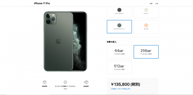 Giao diện mua điện thoại trên web chính thức của Apple Store Nhật Bản