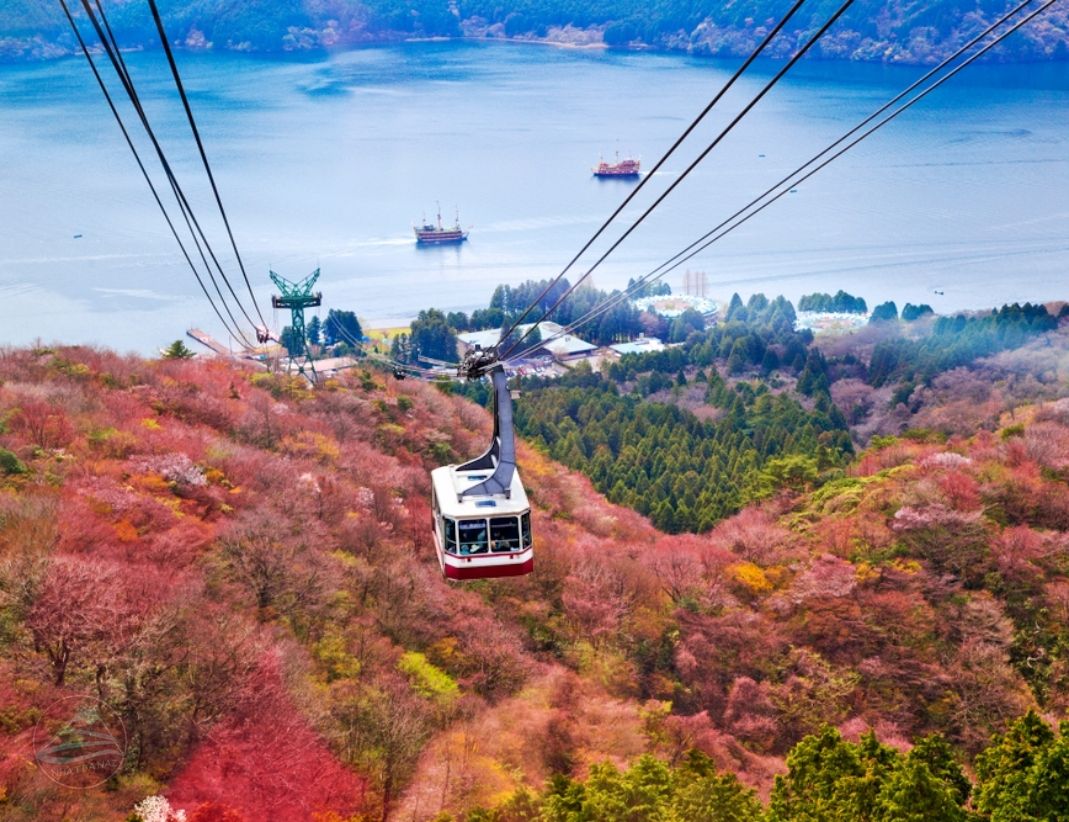 - Cáp treo Kachi Kachi – ngắm toàn cảnh núi Phú Sĩ mùa xuân: Nằm bên bờ hồ Kawaguchiko, cáp treo Kachi Kachi là điểm dừng chân không thể bỏ lỡ trong hành trình khám phá vùng núi Phú Sĩ. Từ trên cabin cáp treo, du khách có thể chiêm ngưỡng toàn cảnh Núi Phú Sĩ phủ tuyết trắng in bóng trên mặt hồ xanh biếc. Chỉ trong vài phút di chuyển, khung cảnh mở ra như một bức tranh sống động của thiên nhiên Nhật Bản. Trên đỉnh Tenjōyama, du khách có thể dạo bộ, chụp ảnh tại đài quan sát Fuji View, gõ chuông cầu nguyện tình yêu, hoặc thư giãn tại quán cà phê trên mây (Du khách trải nghiệm cáp treo khứ hồi)