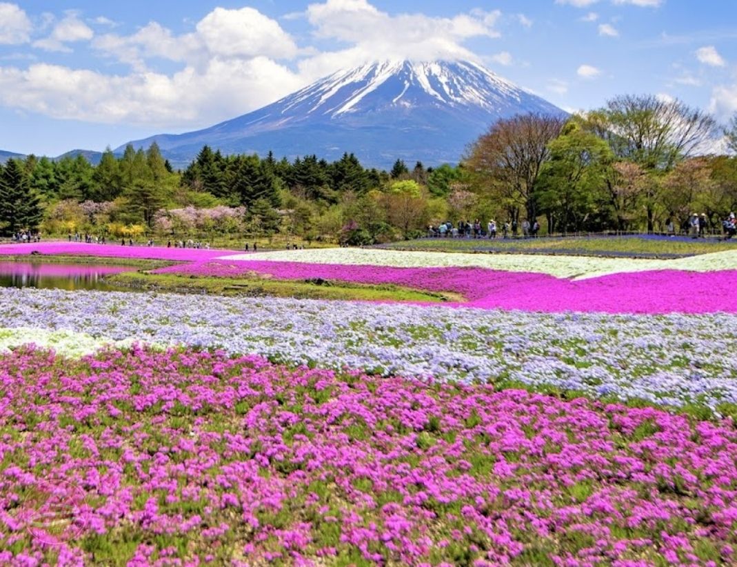 - Khám phá lễ hội Fuji Shibazakura (Hoa Chi Anh): được tổ chức tại khu vực Phú Sĩ Ngũ Hồ. Shibazakura được biết đến với tên gọi là hoa chi anh. Vào mùa hoa chi anh, những cánh đồng xung quanh núi Phú Sĩ sẽ khoác lên mình những chiếc áo màu hồng, trắng và tím tuyệt đẹp tạo nên một khung cảnh nên thơ hiếm thấy.
