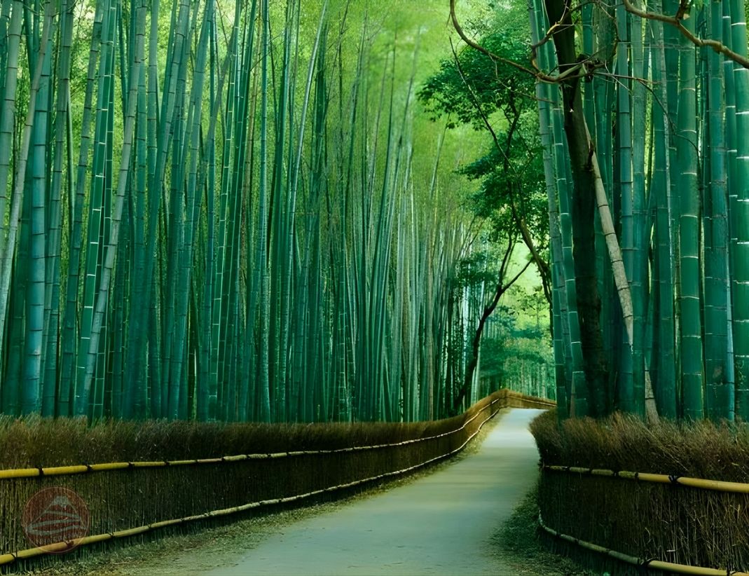 - Rừng tre Arashiyama khoác lên mình vẻ đẹp xanh mướt, hòa cùng sắc hồng nhạt của những bông hoa anh đào còn sót lại. Khi bước vào con đường uốn lượn giữa các thân tre cao vút, du khách sẽ cảm nhận được không gian yên tĩnh, thư thái, với âm thanh xào xạc của tre và ánh sáng mặt trời xuyên qua từng kẽ lá tạo nên khung cảnh thơ mộng.