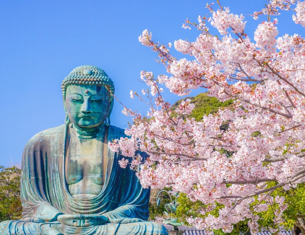 - Tham quan Đại Phật Kamakura (Kōtoku in) – Quốc bảo của Nhật Bản, giữa khung cảnh mùa xuân rực rỡ, tượng Phật bằng đồng cao 13,5m nổi bật dưới những tán hoa anh đào hồng phấn, tạo nên bức tranh yên bình và hùng vĩ, nơi du khách vừa chiêm ngưỡng biểu tượng thành phố vừa tận hưởng không khí thanh tịnh của mùa hoa. (Không bao gồm phí vào bên trong tượng phật)