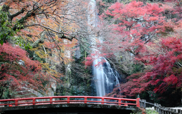 Nằm ở phía bắc Osaka, công viên Minoo cung cấp không chỉ cảnh quan núi rừng tuyệt đẹp, mà còn là nơi để ngắm lá đỏ vào mùa thu. Đặc biệt, đường dẫn đến thác nước Minoo trở nên rực rỡ với màu sắc của lá đỏ.