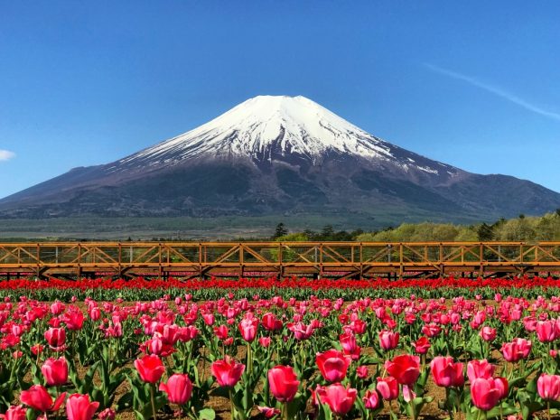 Nhà mình cũng dừng chân ở nông trại wasabi lớn nhất Nhật Bản để rồi bị thôi miên trước những cánh đồng wasabi xanh mướt uốn lượn trên dòng nước trong vắt chảy quanh co… Và tất nhiên, không thể không ghé thăm Phú Sĩ – nóc nhà của xứ Phù Tang mùa này đã trắng tuyết, sáng lấp lánh dưới nắng thu.