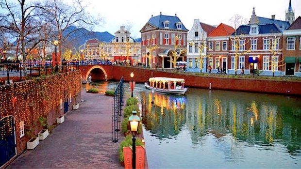 Các tòa nhà và kênh rạch được tái hiện trung thực khiến du khách phải đi từ bất ngờ này đến bất ngờ khác. Hàng ngàn bông hoa Tulip đủ sắc màu trải dài như bất tận. Các công trình như: lâu đài, nhà thờ, nhà hát, khách sạn, nhà hàng, quán cà phê, cửa hàng đồ lưu niệm đều xây dựng giống như ở Amsterdam. Những góc phố, những con đường đẹp như đưa du khách bước vào trong tranh vẽ.