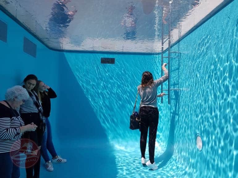 Trong bảo tàng có một nơi bất cứ khách tham quan nào cũng rất thích thú đó là được cảm nhận thế giới dưới mặt nước mà không phải đeo bình dưỡng khí. Một hồ bơi giữa bảo tàng được thiết kế hai lớp, người ta đặt một mảng kính bên trên và bơm nước cao khoảng vài xăng-ti-mét. Đường hầm từ trên cạn dẫn người xem bước xuống dưới lòng hồ không có nước, ánh sáng xuyên qua bề mặt tấm kính tạo ra màu xanh ngọc và những vân sóng in trên tường lấp lánh. Từ dưới ngước lên ta có thể thấy bầu trời mờ mờ tạo cảm giác ngộp thở. Mục đích của tác phẩm là cho người xem 2 thế giới khác nhau chỉ qua vài bậc cầu thang.