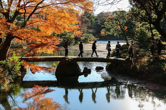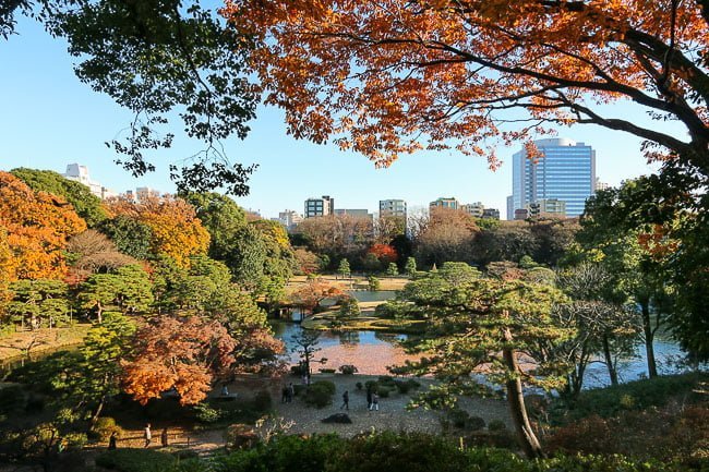 Vườn Rikugien là một trong cảnh quan tuyệt đẹp của Nhật bản và nó là một trong nơi nổi tiếng nhất của mùa thu. các điểm quan sát chính nằm ở khu vực cây cối gần cổng Somei và nơi đó chúng ta có thể thưởng thức màu sắc thu với những chiếc lá bị cháy và bắt đầu rơi xuống bay lả tả khắp nơi.